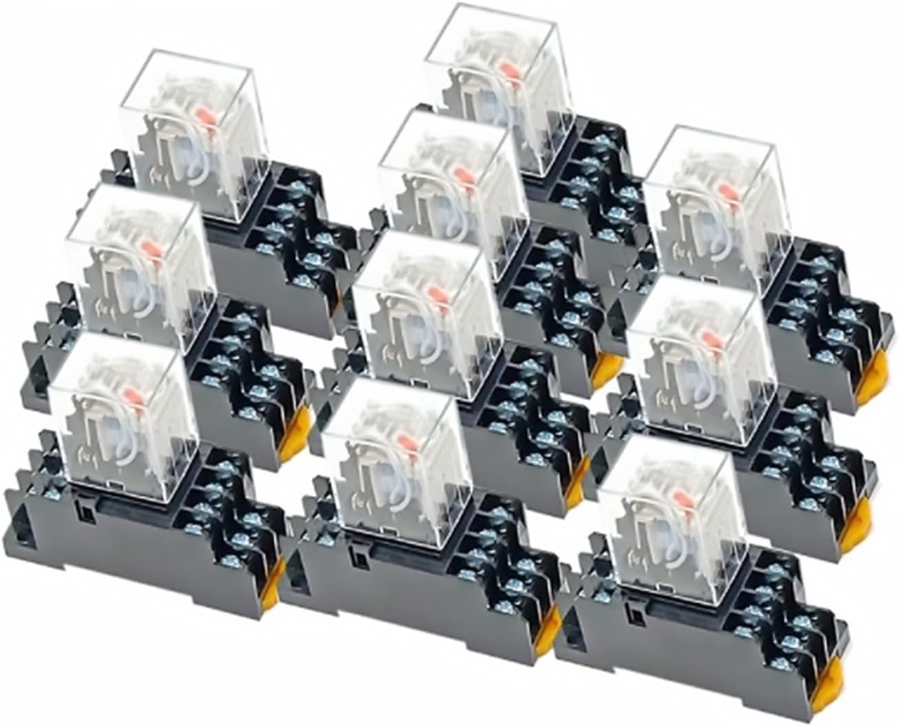 relayElectromechanical RelaysNote: If you want buy other voltage Please leave message to us or remarks.Specifications:Product Name:Power Relay And SocketModel No.:MY2NJMY3NJMY4NJ HH52P HH53P HH54PAction Type: DPDTCoil Voltage: 110V/220VAC 12V/24VDCContact Capacity:3A 240VAC3A 28VDCPin Quantity:8/11/14PinsMounting Rail Type: 35mm DIN RailMaterial(External): Plastic MetalPackage Content:10x Power Relay+Socket