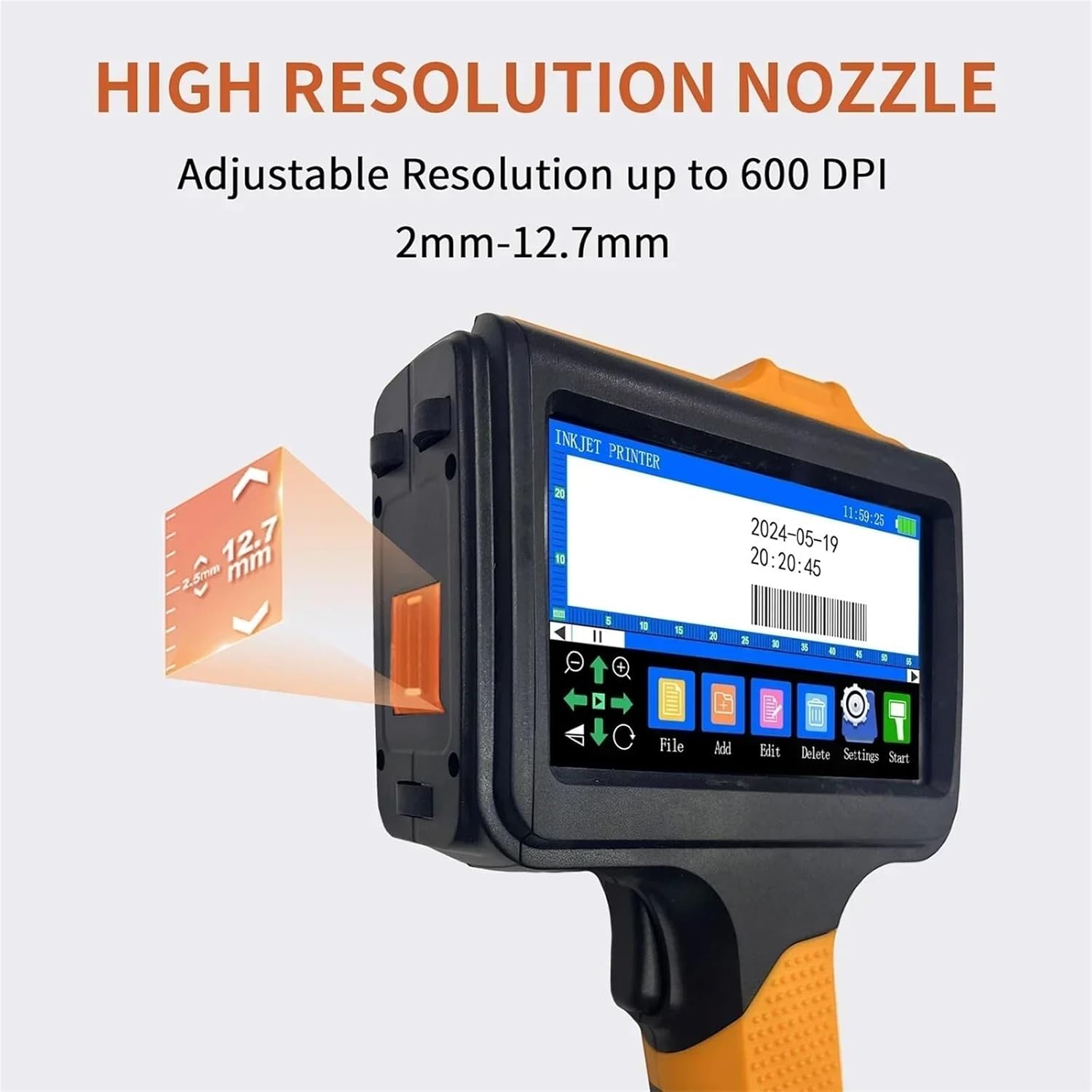 12.7mm Multi-Languages Handheld Inkjet Printer for Text QR Barcode Batch Number Logo(UK)
