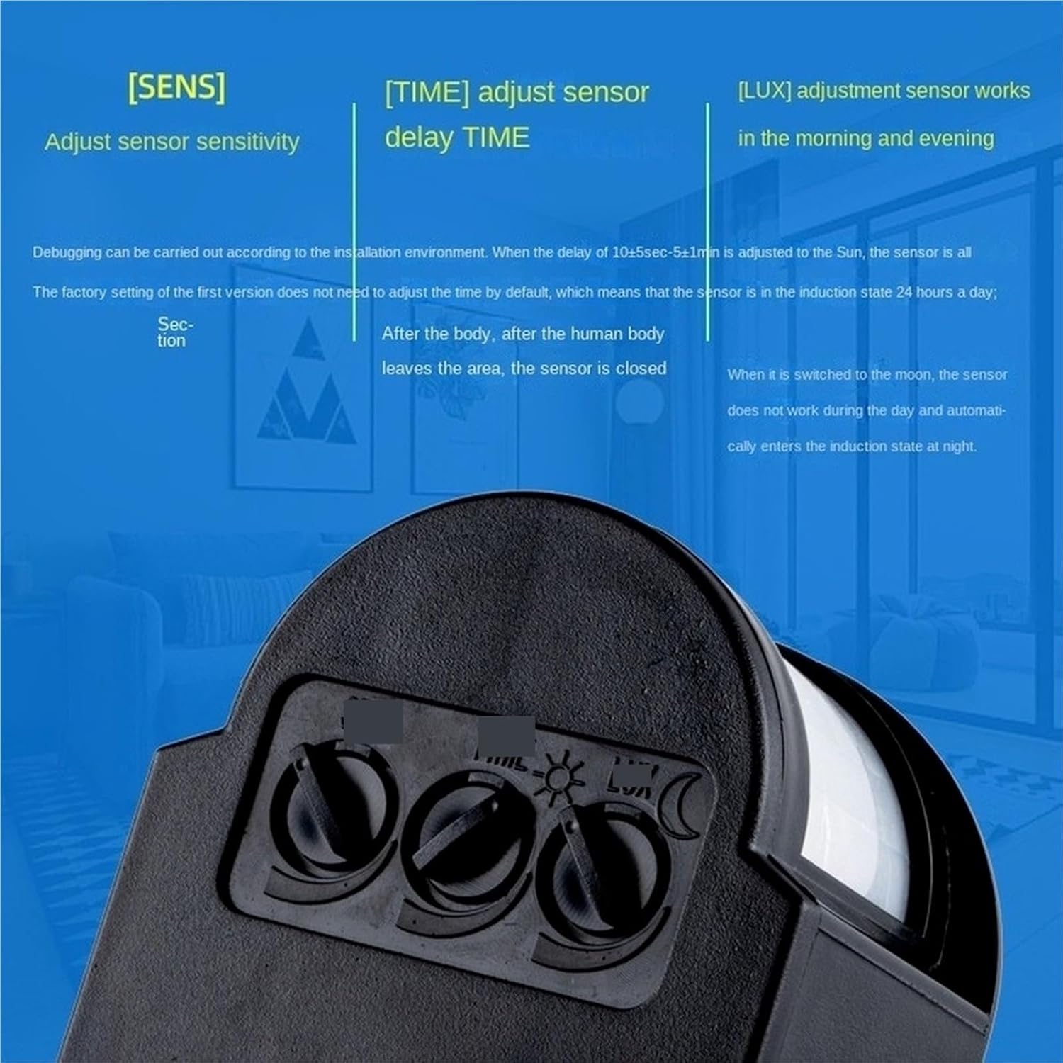 New Adjustable PIR Switch 110-240V Portable Sensor Switch Plastic Detector Outdoor 180 degree Detection Motion Sensor 12v 24vThe smart new products, increase the sensor sensitivity can be adjusted (using the SENS knob to adjust) function, increasing the sensor head can be up and down and left and right (up and down 90 degrees, about 160 degrees) can adjust the function, but also increased the induction angle. Product systemic waterproof, can be used indoors and outdoors.