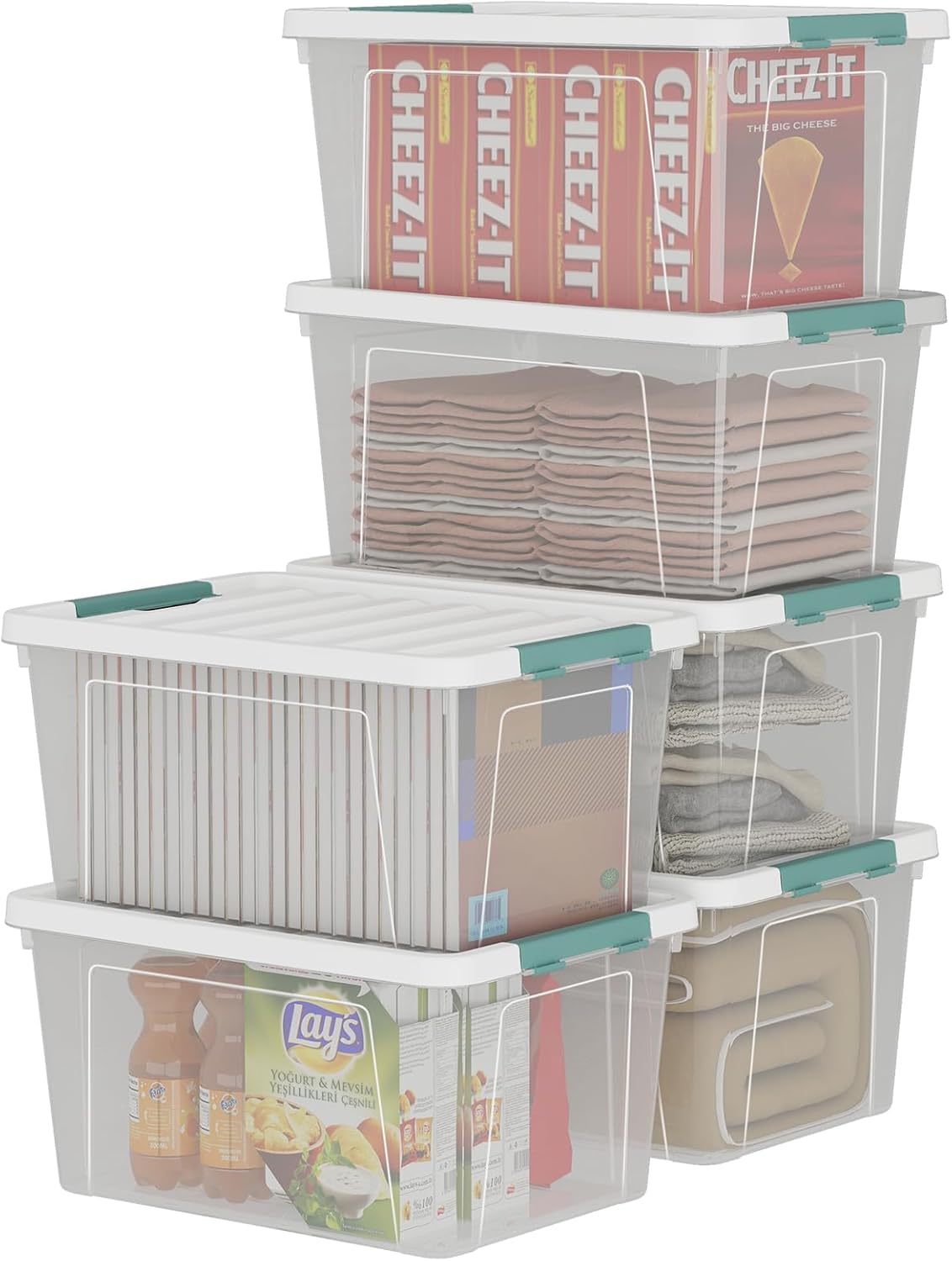 14 Quart Latching Container Box with Handle, 8 Pack Plastic Lidded Storage Bin