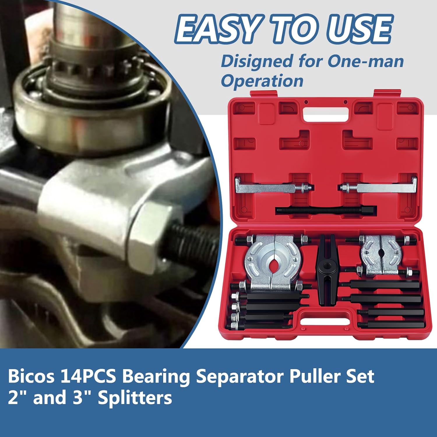 14PCS Bearing Separator Puller Set 2" and 3" Splitters for Effortless Bearings Removal Kit, Heavy Duty 5 Ton Capacity Bearing Separator