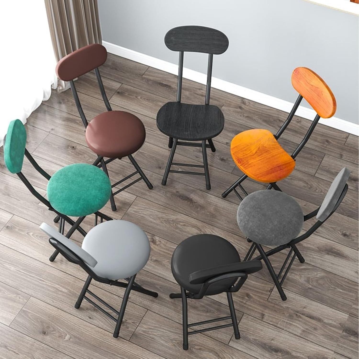 18.5in Folding Stool, Cushioned Padded Stool with Backrest & Footrest, Round Foldable Portable Kitchen Chair for Fishing Hiking Gardening Travel BBQ (Color : Gray) (Brown One Size