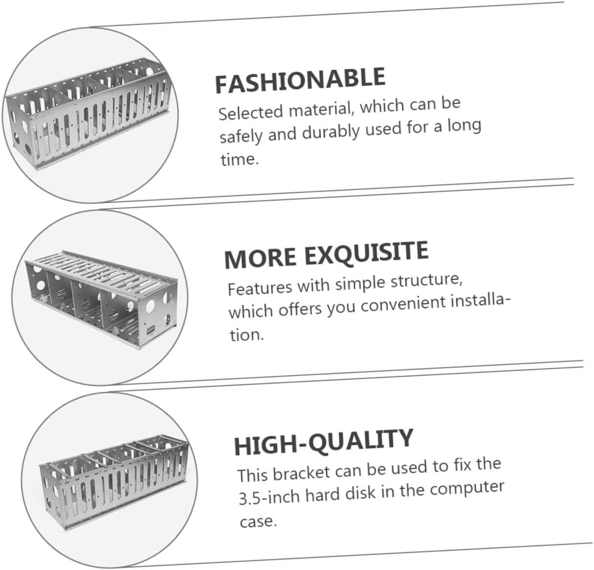 Package Include 1 x Hard Driver Storage Bracket 32 x Plastic Characteristics - Material: Stainless steel Hard Drive Cage. - Easy for installation, you can install it easily without drilling any holes Hard Drive Mounting Bracket. - It is manufactured with technology to ensure the of the product and can work for a long time Hard Disk Accessories. - Cost- , you can buy this practical product at an Hard Drive Accessories. - This product is manufactured with material, special and unique for long time use Hard Drive Bracket. - It is simple in design, but very practical in use, which brings great convenience to you Hard Disk Rack.Goods DescriptionHard Drive Mounting Kit This is a very practical hard drive bracket.Hard Drive Tray The craftsmanship can serve you well without breaking easily.Mounting Bracket It is manufactured with technology to ensure the of the product and can work for a long time.Hard Drive Mounting Bracket 5 inch hard drive bracket is convenient and practical, with excellent texture, and without being easily damaged.3.5 Inch Hard Drive Case The 3