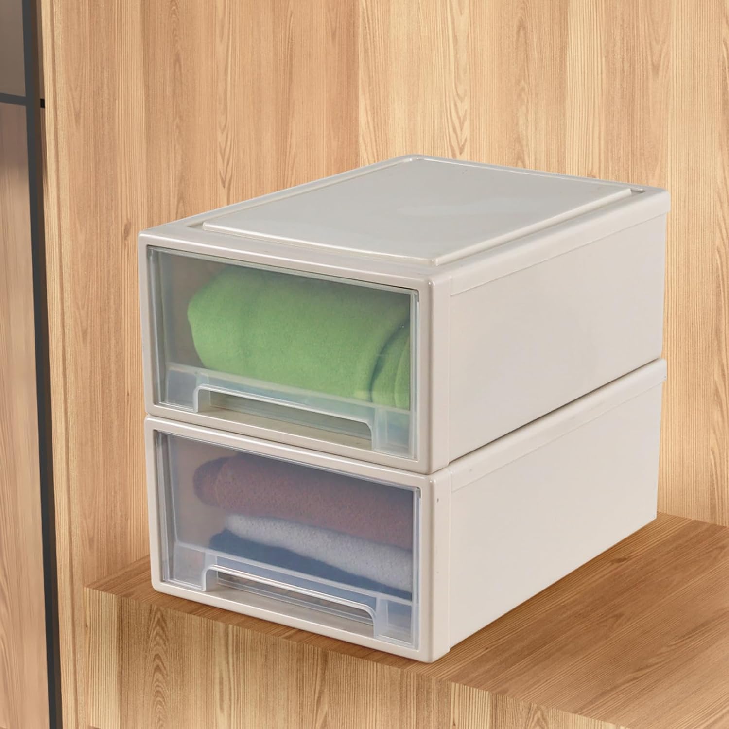 18 quart plastic storage drawer, modular stackable design, free combination, lightweight and practical, made of high-quality plastic, good workmanship, smooth and easy to access, 4 pack