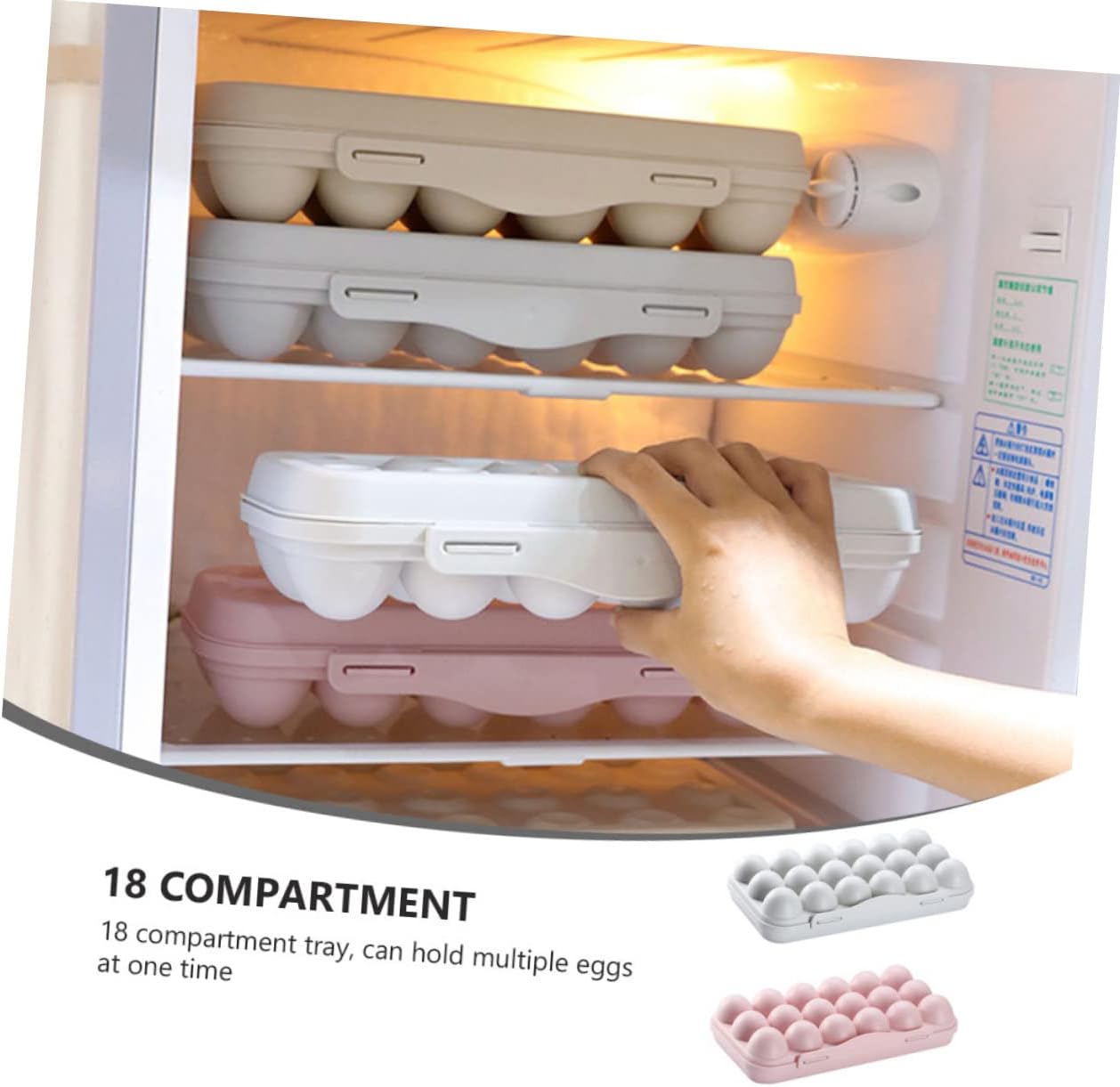 4 Pcs 18 Egg Storage Box Egg Storage Tray Egg Display Egg Container Rack Egg Trays for Deviled Eggs Package Include 4 x egg trays Characteristics - Size: 30.00X15.00X6.50cm/11.79X5.89X2.55in fresh egg tray. - Material: PP egg organizer tray. - Color: Pink, gray refrigerator egg holder. - 18-compartment tray, can hold multiple eggs at one time egg box. - High-end products, simple and fashionable for home kitchen use frensh egg holder. - The product is creative and fine workmanship, authentic quality egg storage tray. - plastic material, safe, durable and egg container. - Suitable for placing eggs in the refrigerator in the kitchen, preventing eggs from breaking fridge egg box. Goods Description Kitchen egg holder This storage tray is specially designed for holding eggs, with 18 grids, your eggs will not press each other and broken.portable refrigerator And flat bottom design allows the egg holder can be placed on the table stably.nails hardware Besides, it is easy to put and take out eggs Fridge egg tray: high-end products, simple and fashionable for home kitchen use. Quail egg boxes: grid storage, neither flavor and save space, more efficient use of space. Egg storage bin: the flat bottom, the egg storage container allows your eggs to be stably placed in the rack.