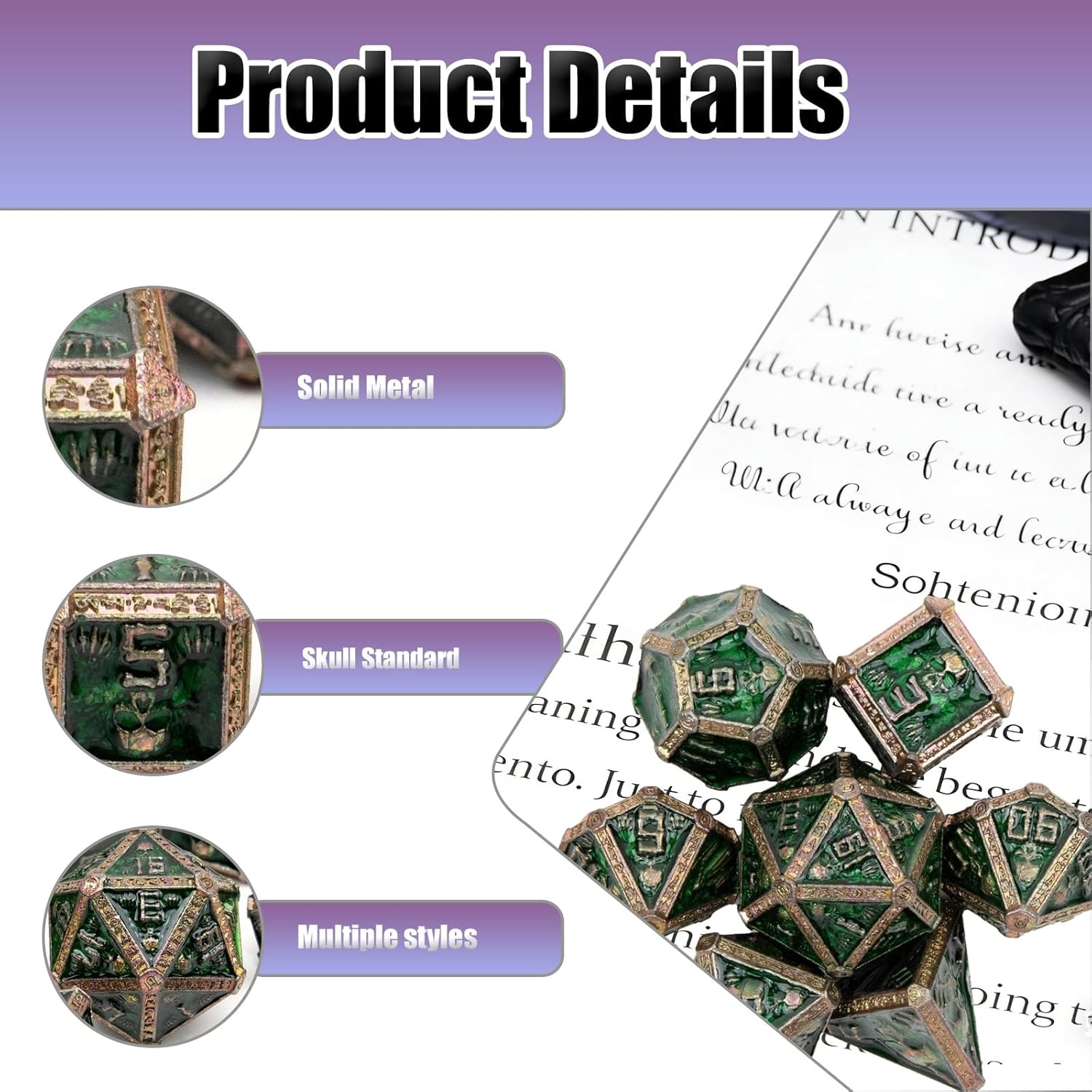 • Excellent Craftsmanship: metal dice take skull as the design theme, combining the elements of skull, all of these elements are carved on the metal dnd dice set with exquisite craftsmanship