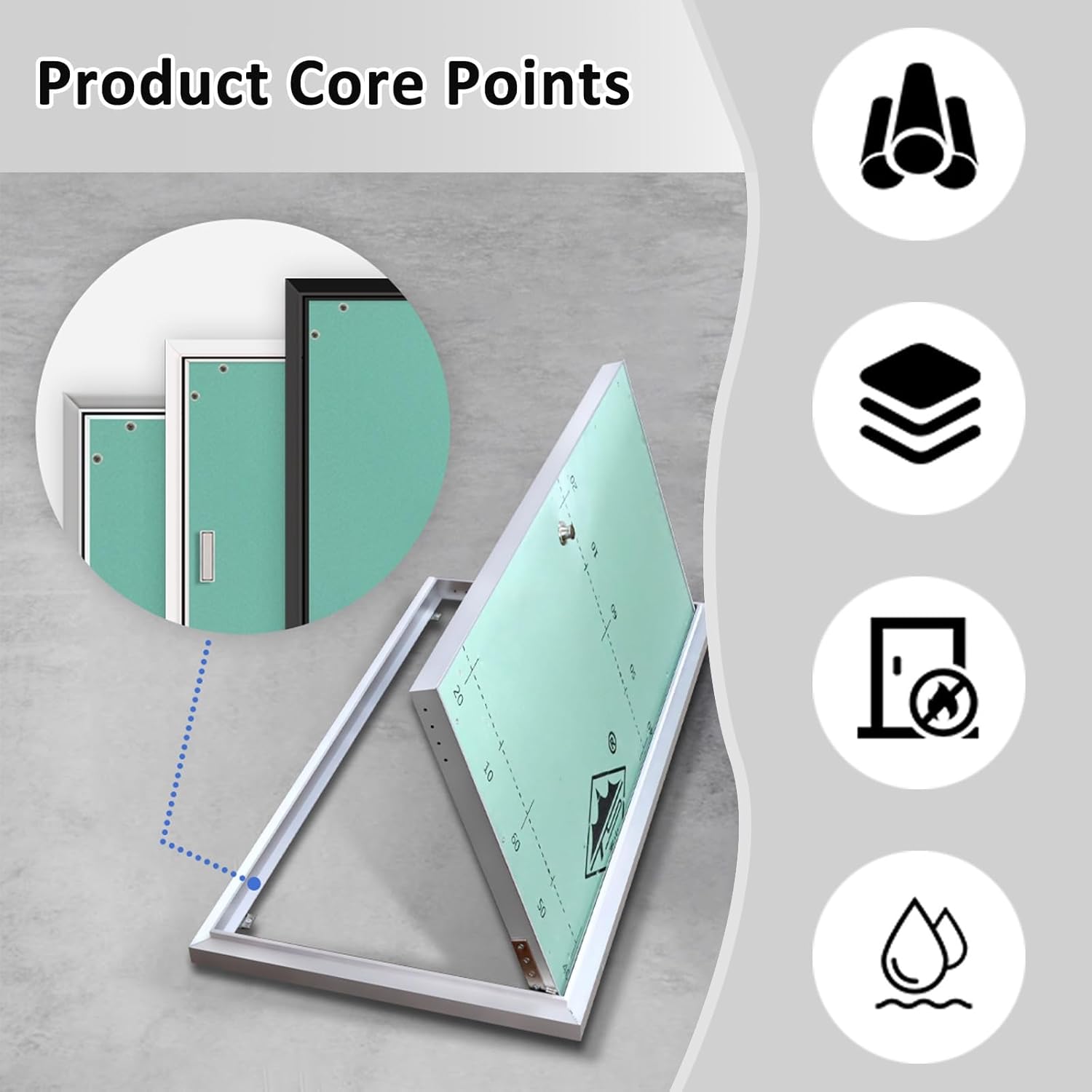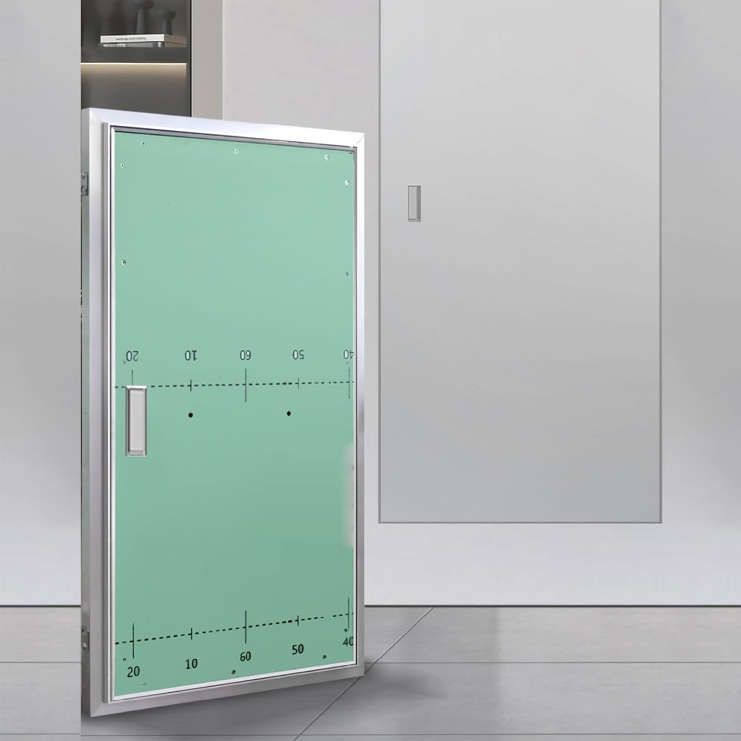Access Panel for Drywall Paintable Plasterboard Access Door Concealed Plumbing Electrical HatchProduct FeaturesMade of aluminum alloy and gypsum board, sturdy and long service lifeSeamless welding technology, smooth surface, no bumpsIt can be opened to 120° to provide more maintenance spaceSilent magnetic lock, easy to open and closeBuilt-in silent sealing strip, waterproof and anti-collisionSuitable for various applications including plumbing, electrical, network connections and moreProduct specificationsMaterial: aluminum alloy frame + gypsum boardColor: as shown in the pictureWidth: 30-90cmHeight: 40-120cmApplicable scenarios: office building/hotel/factory/library/bathroom, etc.Use: weak current box/vent control box/rainwater collection box inspection port/access control equipment box/equipment maintenance portPacking list: 1 x inspection panelNote:The above dimensions are all inner diameter dimensionsManual measurement, please allow a small amount of error, the specific dimensions are subject to the actual dimensions