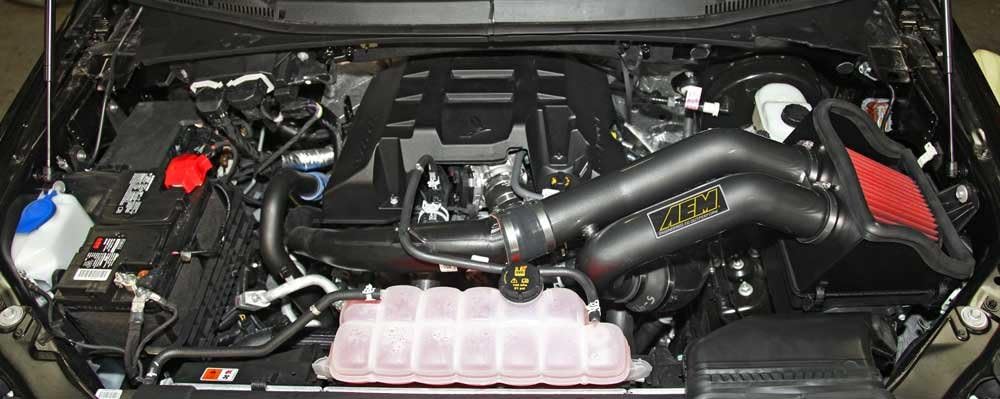 The AEM 21-8128DC Performance Cold Air Intake System produces horsepower and torque gains by replacing your vehicle's restrictive factory air filter and air intake housing. This air intake system was designed, tuned and dyno-tested to fit specific Ford F150 EcoBoost models. Air enters the system through an oversized AEM Dryflow synthetic washable air filter for outstanding air flow, filtration and performance. The air filter is located in the original air box space and is protected by a heat shield which is designed to reduce intake air temperature and increase horsepower. The air intake tubes are constructed from mandrel-bent aluminum featuring a durable gunmetal gray powder coated finish. This air intake system was developed to accommodate the engine's factory emissions control devices including the intake air temperature sensor. The dual intake AEM Dryflow air filter is made from an oil-free, synthetic filter media that can be used for up to 100,000 miles before cleaning is needed (depending on driving conditions). The air intake system is easy to install with commonly available tools and it is backed by AEM's Lifetime Limited Warranty. Some AEM air intakes are not legal for sale or use in California and other states adopting California emission standards, while others are 50 state legal. View the 21-8128DC vehicle applications to determine the legal status for each vehicle.