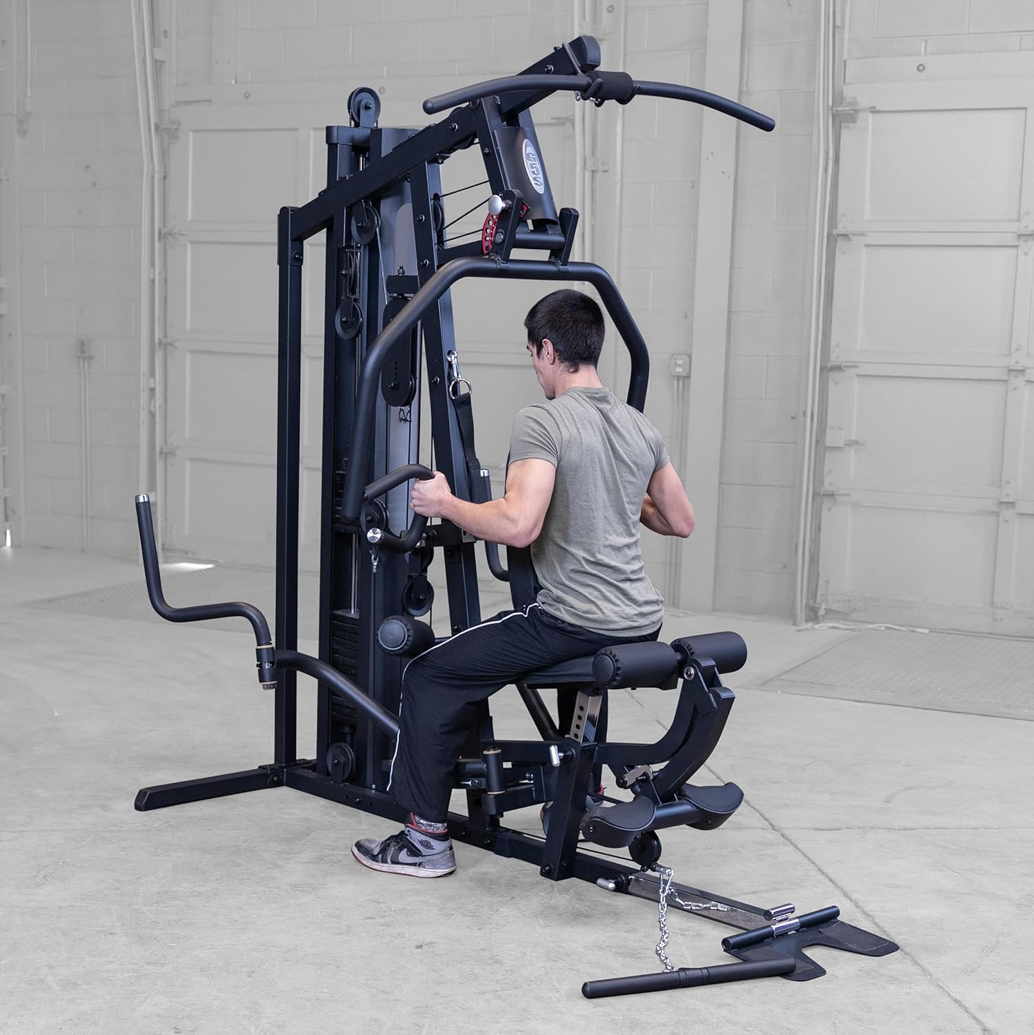 Product Description The Bi-Angular press arms of the G6B guide you through the optimal natural range-of-motion while applying resistance from two directions simultaneously. This smooth, fluid, multi-directional resistance system automatically produces 25% more muscle interaction by eliminating the ability to rest your chest muscles. Thus, you increase the exercise intensity through a full range of safe, convergent, multi-joint, multi-plane movement patterns. Amazon.com BI-ANGULAR PRESS ARMS: Our patented Bi-Angular Press Arm guide you through the optimal range of motion while applying resistance from two directions. The smooth, multi-directional resistance increases muscle interaction by 25%. Enjoy the benefits of Bi-Angular Technology when doing chest presses, incline presses and shoulder presses. Itâs like working out with free weights. LAT PULLDOWN / HIGH PULLEY STATION: Perform lat pull downs, triceps press downs, cable crossovers and many more high pulley exercises. Adjustable hold down pads stabilize your body for lifts beyond your body weight. Unique versatility allows you to increase the strength and endurance of your back muscles. AB CRUNCH / MID PULLEY STATION: Develop awesome abs and terrific triceps quickly. Bio mechanically engineered for smooth, comfortable, full range of motion crunching movement. Specifically designed for firming, flattening and isolating the entire abdominal area. PERFECT PEC STATION: Equipped with swivel arms and designed for both unilateral and bilateral movements you get the maximum stretch for deep muscle toning, and the most incredible upper body development possible. LEG EXTENSION / LEG CURL STATION: Build muscular legs and stronger knee joints. The leg developerâs SmoothGlide Bearing Systemâ combined with the self-aligning leg cuffs guide you through the most demanding leg curls and leg extensions. An independent weight stack allows more than one user can workout at a time. SEATED ROW / LOW PULLEY STATION: Essential for well-developed backs, seated row exercises build depth in the middle back and train the hard to reach lower lats. Low pulley swivels smoothly and fully to provide accurate resistance for cable curls, upright rows, shrugs, leg abduction, leg adduction and much more. POWDERED BY A 210 LB. ALLOY WEIGHT STACK: Advanced alloy weight stack plates are machine drilled to exact specifications and employ state of- the-art nylon bushings for super smooth and quiet operation.