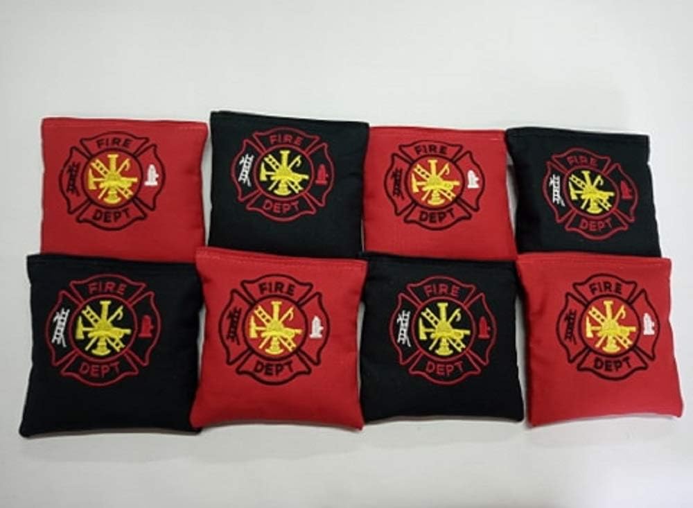 This is for 4 red and 4 black regulation made cornhole bags. Doubled stitched and filled with whole corn or plastic resin.