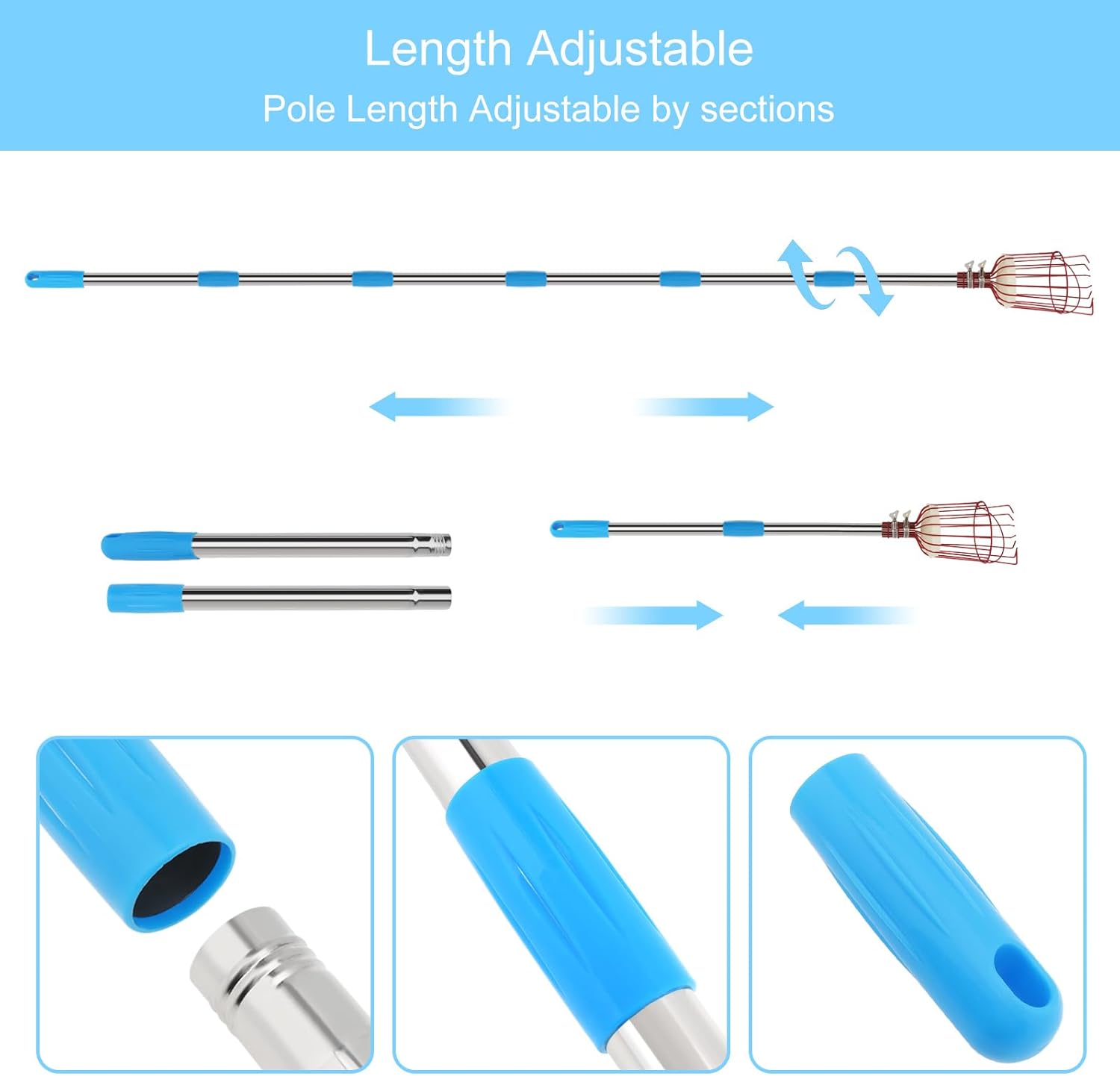 Omninmo Iron Wire High-altitude Fruit Picker with Basket Features: 🍐Our fruit picker rake comes with metal twist on head basket( 9"x5.5"x5.5") for pear, orange, avocado, peach, pecan, pomegranate, lime, papaya, plum, mango tree and persimmon tree picker and more fruit in four seasons. 🍊Cherry picker tool length is adjustable by sections to be 35" to 95" which is safer and more efficient to get fruit from tall trees without falling off a ladder any more. 🍎Fruit picker is made commercial grade & extra thick 1" diameter stainless steel that is both strong and easier to maneuver than the older wooden ones. 🍒5 mins to assemble this fig picker by screwing all parts together with no extra tools required. Great Time saver for fruit tree picker. 🥭The material is A3 iron wire, with a diameter of 2.8 millimeters. After high temperature immersion molding, it is 4 millimeters, sturdy and durable. Specification: Material: A3 Iron Wire Color: Red Package Include: 1 x Fruit Picker Pole Tool Sets