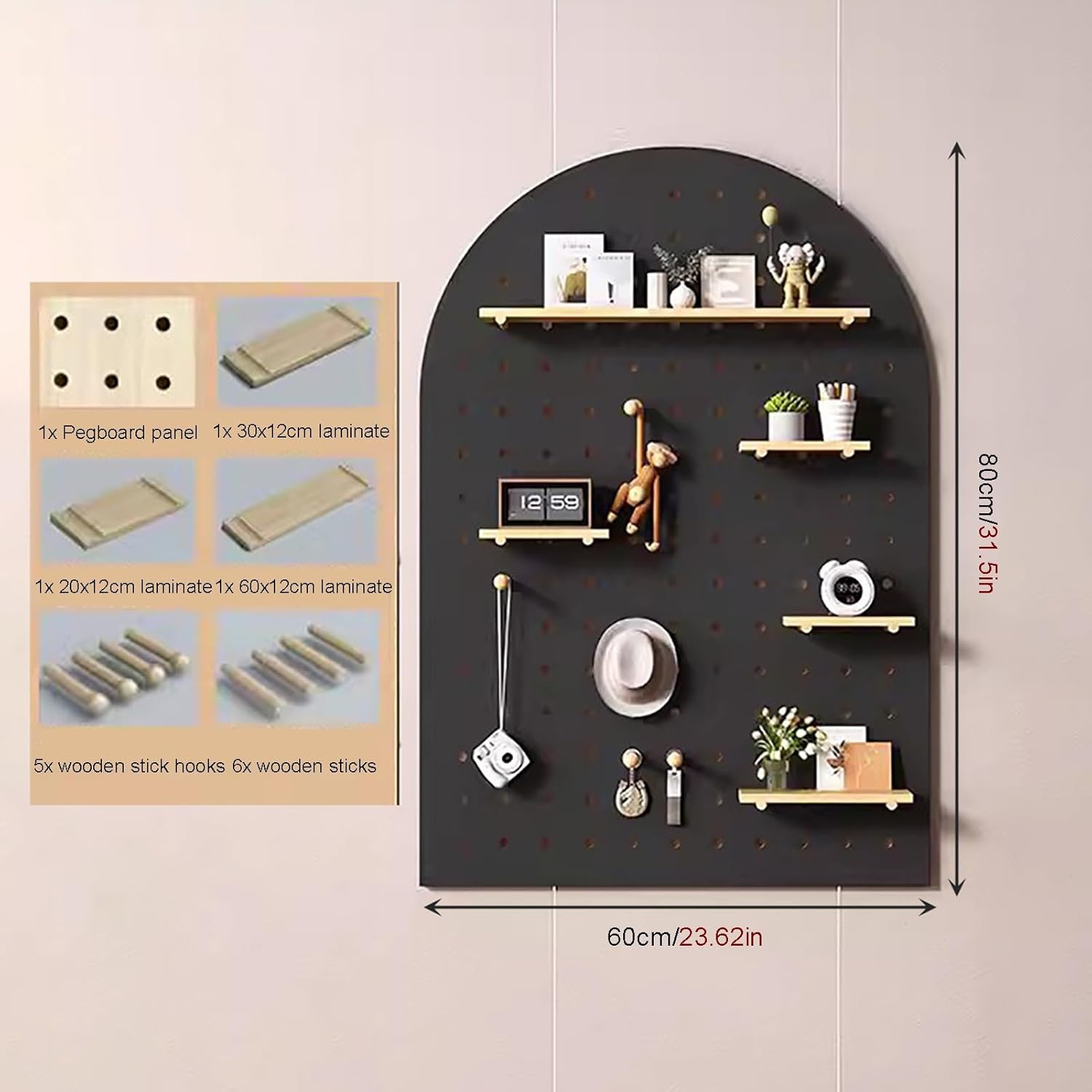 If you are looking for a professional pegboard display rack, then your research is over here. The product is manufactured with of material, and the product has creative design, with enough storage holder and hanging hooks for your needs. Great for home, garage, balcony, office, restaurant, etc. Features - Material: Wood - Size: 40x60cm/15.75x23.62in , 60x80cm/23.62x31.5cm,60x120cm/23.62x47.24in(LxH) - Laminate thickness: 1.6cm/0.63in - Match well with most of home decor, simple and modern, to improve the quality of life. - Can be used to organizing hat, bag,key chains, etc. - Great for display or organization, suitable for home, office, school, dormitory and more. - Create optimal storage to help maximize your space Package Including 1 x Storage pegboard Note: Manual measurement,there will be 1-2cm error,please understand. Due to light and personal differences in color understanding,there will be small color difference,in kind prevail.