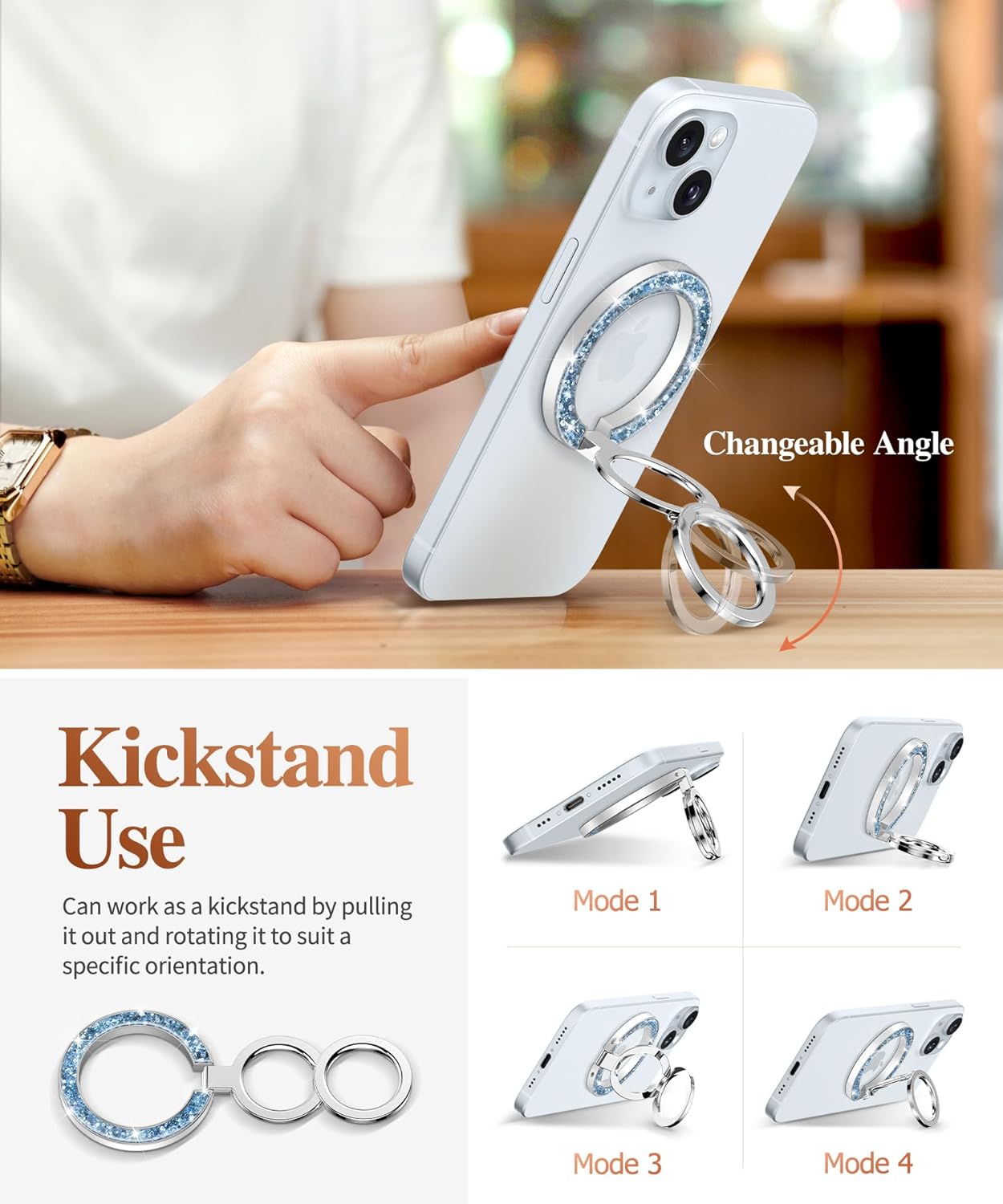 GVIEWIN Bundle - Compatible with iPhone 17 Pro Max Floral Case (Aconite/Blue) + Magnetic Phone Ring Holder (Glitter/Blue)