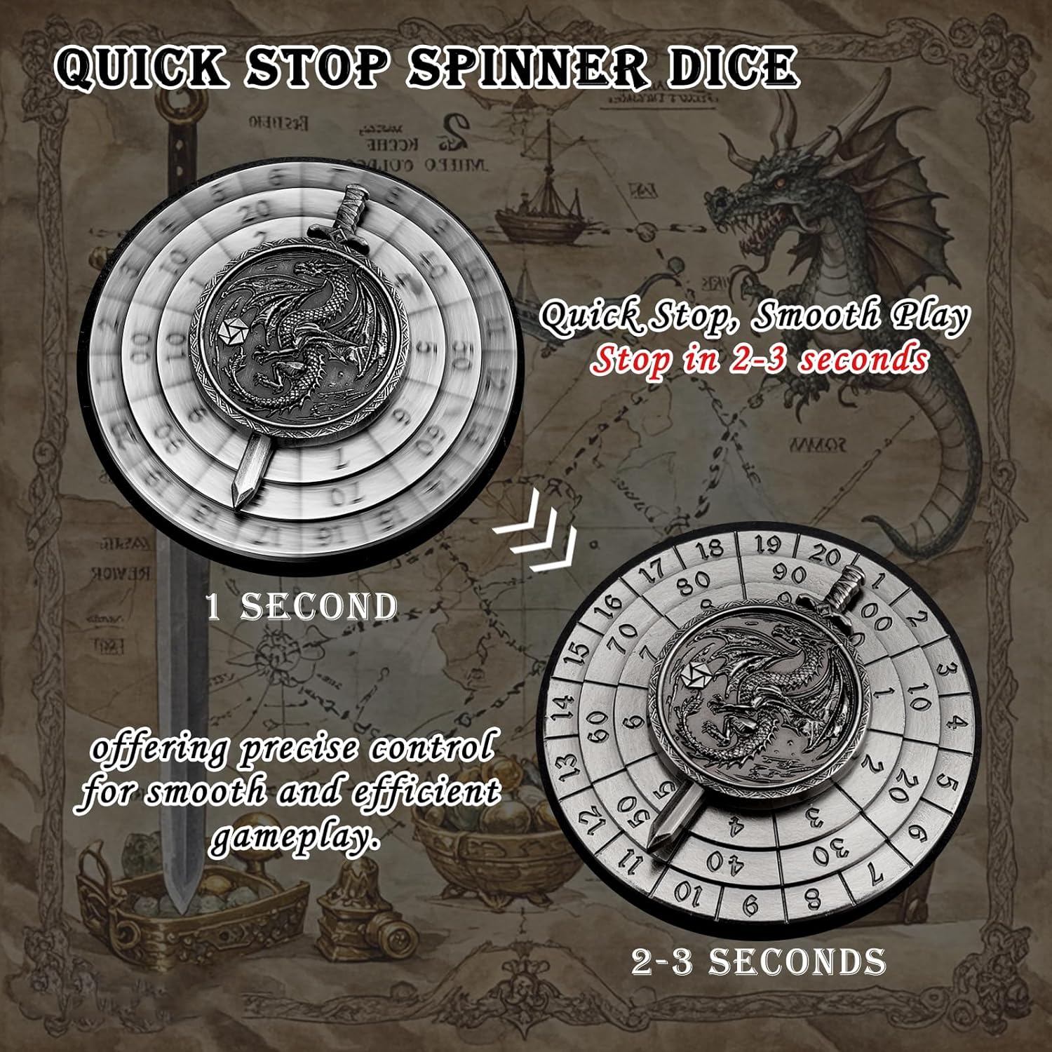 • Fun spinner dice to roll as cool dnd dice or spin while thinking or doing focus training and stress relief.