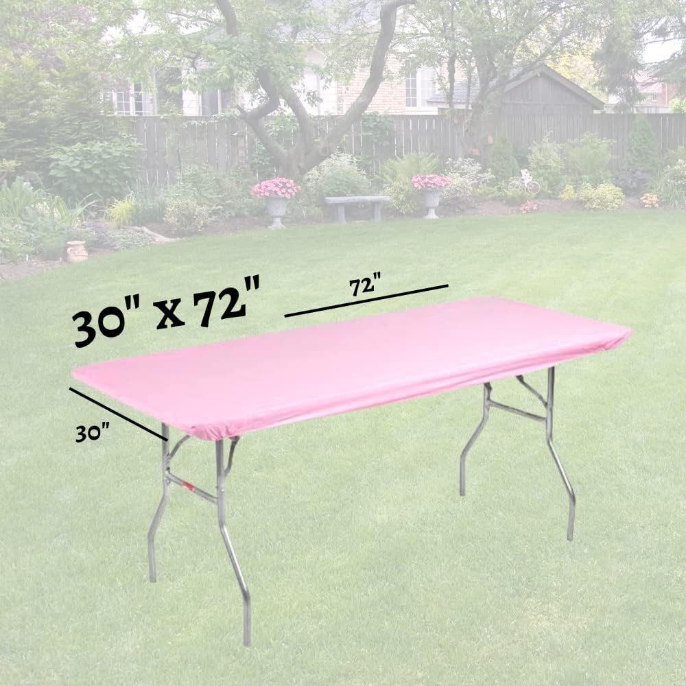 Bundle of 10 Pink Plastic Table Covers Kwik-Covers are lightweight, elastic fitted vinyl table cover with specially-designed elastic edging that holds the cover in place, even in the wind. Kwik-Covers include a 4” (4 inch) self-adhesive tape strip along the length of each side for added support. Kwik-Covers are durable enough to be re-used yet affordable enough to be disposed of after a single use making clean-up “a snap!” NOTE: Table is NOT included.