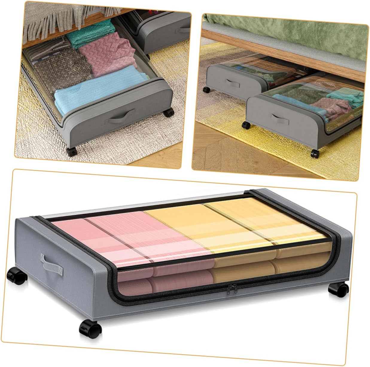Package List 1 x Under Bed Organizer Characteristics -Color:Grey underbed storage with wheels -Size:80.00X43.00X16.00cm/31.44X16.90X6.29in storage with wheels -Material:Non-woven fabrics, iron, PVC storage for under bed - Easy to clean, simply wipe down your storage bags with a damp cloth and let dry underbed storage containers. - This storage bag is suitable to be used to store quilts, blankets, clothes, etc storage under bed organizer. - This under bed storage bin features four wheels, easy to move and clean under bed storage containers. - The organizer storage box is made of breathable and mild material that is strong and does not warp, providing effective protection for your clothing under bed storage bin. - Easy opening design allows you to see what is in the bag and where it is, easily find what you are looking for with ease storage bin under bed.Goods Descriptionunderbed storage bins Also can be a for your friends, they will like it.underbed storage organizer Designed for home storage, this under bed organizer can help to keep your home organized.under bed storage containers Made of sturdy material for long time and use.under bed storage bin It has a simple design, but very in use, giving you a