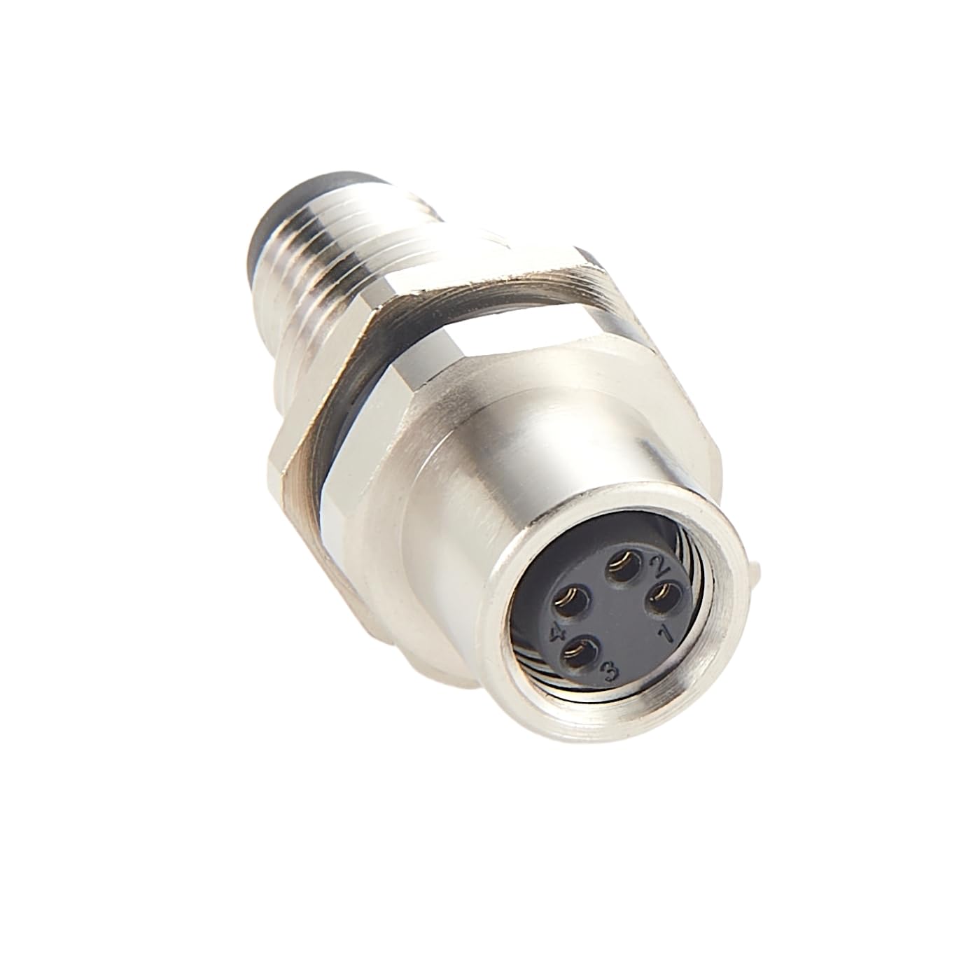 Specification:Connector A: M8 A-Code 4 Pin MaleConnector B: M8 A-Code 4 Pin FemalePanel Mount: Bulkhead Panel MountProtection Class: IP67Panel Cutout Size: 11.5mmContact: Cooper, Gold-platedSealing: O-ring