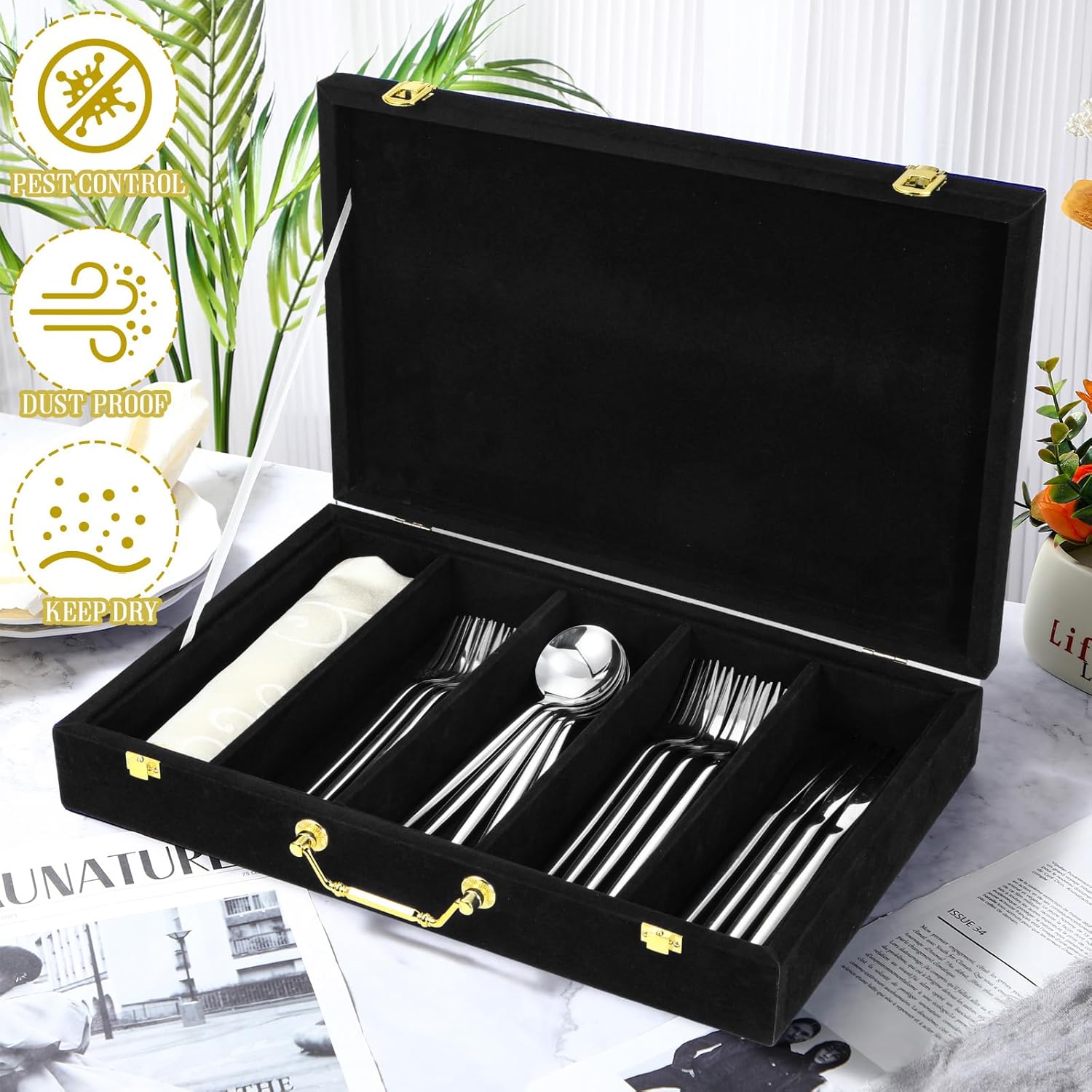 | Included Components | 1 x Velvet silverware storage box |