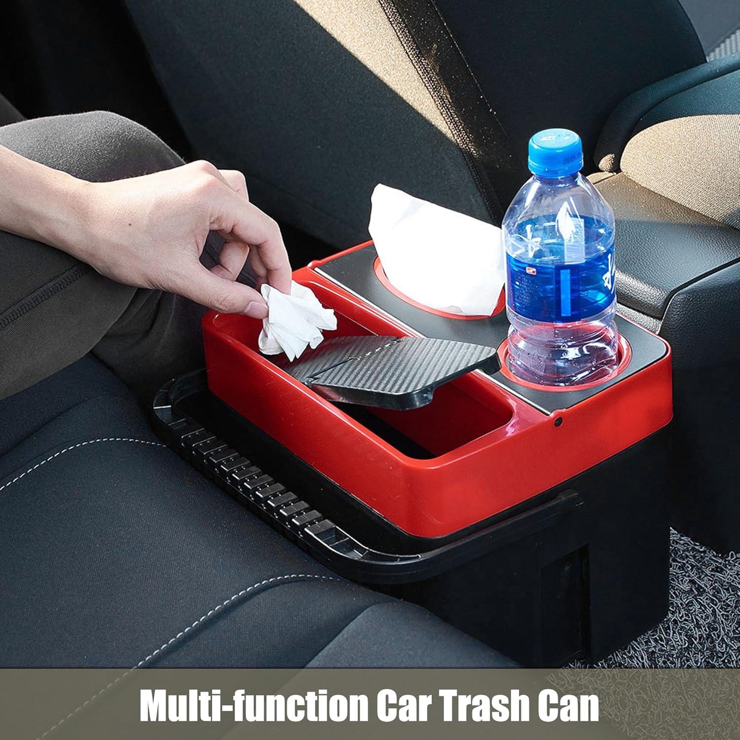 Red Multi-function Storage Bucket Organizer Car Trash Can Cup Holder Tissue Box Car Interior Organizer