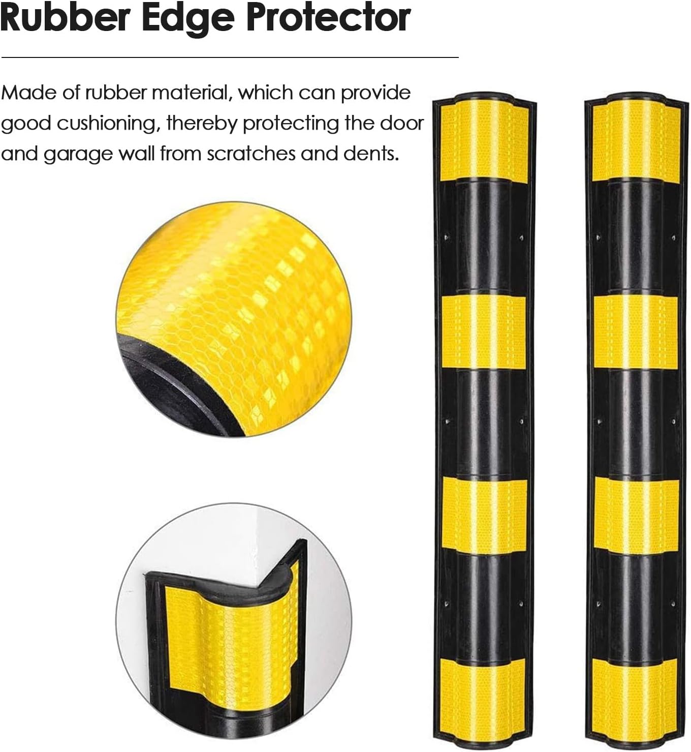 Parking Garages Protection:Protect your walls and enhance your space with our premium corner guards, designed to prevent damage to wall corners while adding a decorative touch. Crafted from durable rubber, these corner guards are built for long-lasting use in various environments, including shops, offices, homes, garages, parking lots, and warehouses. **Product Specifications:** - **Material:** High-quality rubber - **Sizes Available:** - 31.5x3.9x0.4 in (80x10x1 cm) - 39.4x3.9x0.4 in (100x10x1 cm) - 47.2x3.9x0.4 in (120x10x1 cm) - 59.1x3.9x0.4 in (150x10x1 cm) **Key Features:** - **Enhanced Parking Assistance:** The yellow and black warning strips provide excellent visibility, making parking safer and easier. - **Versatile Compatibility:** Suitable for all types of walls, these guards can be easily cut to fit your specific needs. - **Designed for Durability:** Ideal for both indoor and outdoor use, they can withstand various weather conditions, making them perfect for parking lots and garages. - **Lightweight and Convenient:** Easy to transport and install, these corner guards can be applied vertically or horizontally to any surface. **Package Includes:** - 1 x Wall Corner Guard **Customer Support:** If you have any questions or concerns, please don't hesitate to reach out. We are committed to providing you with the best shopping experience possible. **Important Notes:** - Please allow for minor measurement discrepancies of 1-3 cm due to manual measurement. - Actual product colors may vary slightly due to display and lighting conditions. our corner guards today to protect your walls and create a safer, more appealing environment.