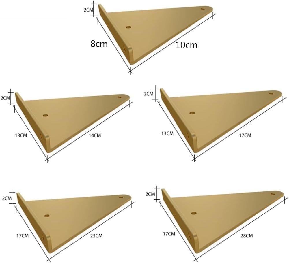 Product information:- Product name: Floating shelf brackets- Material: Steel-Colour: white/black/gold-Load capacity: 20kg/2pcs- Thickness: 3mm- Size: 8×10cm/13×14cm/13×17cm/17×23cm/17×28cmFeatures:- The shelf supports invisible are made of excellent metal material with smooth edges, which is sturdy, , and durable.- Suitable for bedrooms, living rooms, balconies, dining rooms, offices, etc.Bookshelf brackets, cabinet brackets, furniture shelves, you can store books, vases, photos and other small accessories on a floating display stand.Package including:2 x wall shelf brackets,screws