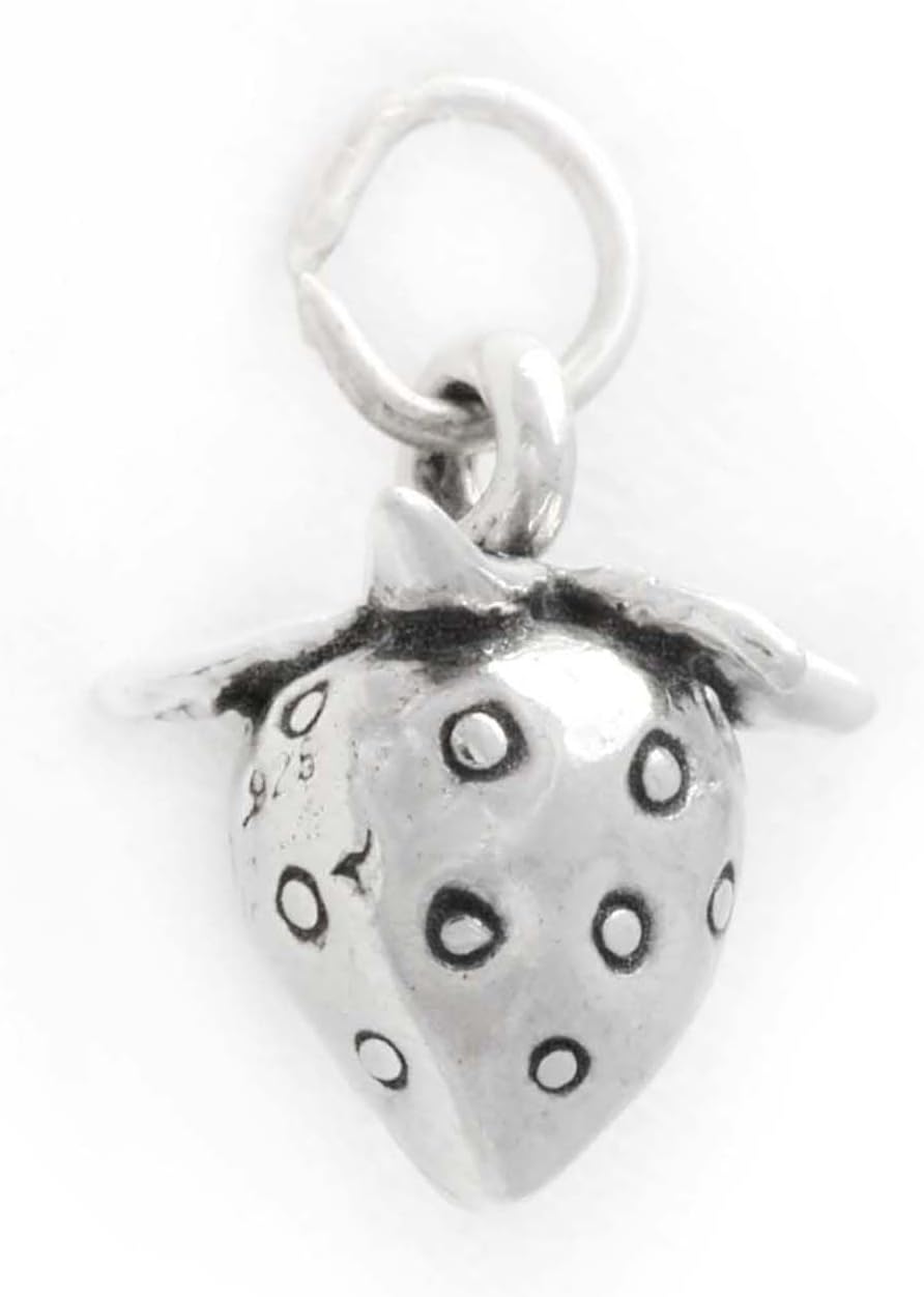 Strawberry 3D .925 solid sterling silver charm or pendant. The charm is hallmarked, comes with a 6mm sterling silver keychain/split ring, and can fit a traditional charm bracelet or a chain necklace.