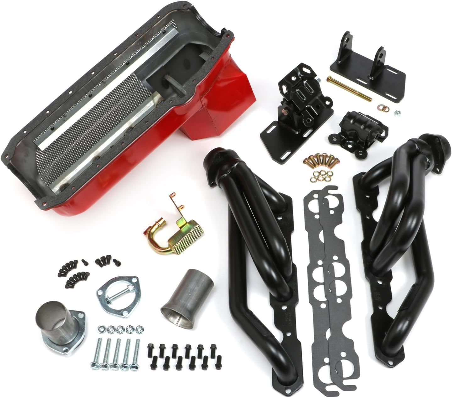 S10/V8 Swap Kit 1.5 in. Tube Standard Duty Incl. Black Shortie Header/Motor Mounts/Oil Pan/Pickup/Gaskets/Hardware/2.5 in. Ball/Socket Collector Uncoated