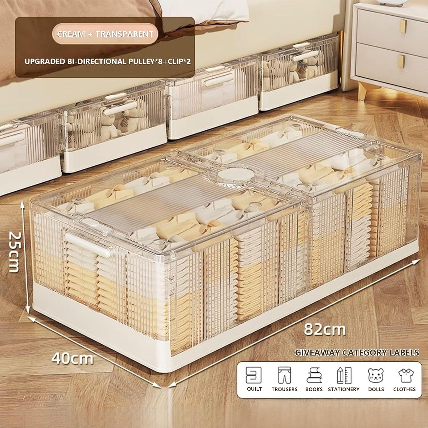 The bottom of the bed storage box is very suitable for storing clothes and bedding in the season, while providing some additional space for your house. Make full use of any corner of the room and make all items dust and orderly! 【Why choose us】 ● Double door design: The underworld storage container can be opened on both sides to facilitate positioning objects. You don't even need to slide out the entire storage box. On the translucent lid, the bed with wheels is very convenient on the bed, and it is easy to see what you need internally. ● Practical design: The solid side handle and foot wheel make women easy to carry. It is also easy to change the project according to the season! Suitable for various compact places, such as houses, university dormitories, bedrooms, basement, etc. ● Multi -size selection: L: Long: 82cm/32.28 inches, width: 40 cm/15.74 inches, height: 15cm/5.9 inches XL: length: 82cm/32.28 inches, width: 40 cm/15.74 inches, height: 20cm/7.87 inches 2xl: length: 82cm/32.28 inches, width: 40 cm/15.74 inches, height: 25cm/9.84 inches [Specification]: ● Color: white, tea color ● Material: PP Plastic ● Product weight: 2.35kg, 2.55kg, 2.6kg [Package Contents]: Folding bed bottom storage box*1