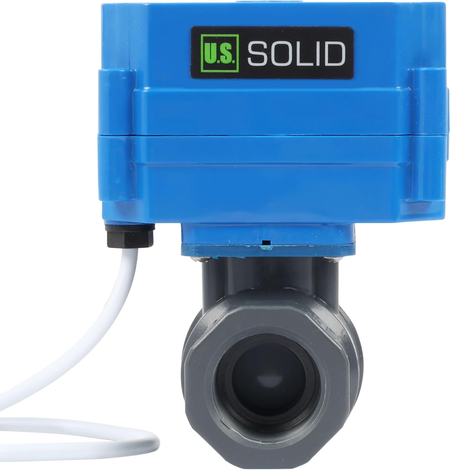 U.S. Solid 1/2" UPVC Motorized Ball Valve - Plastic Electrical Ball Valve with Standard Port, 2 Wire Auto Return, 9-24V AC/DC, Normally Closed