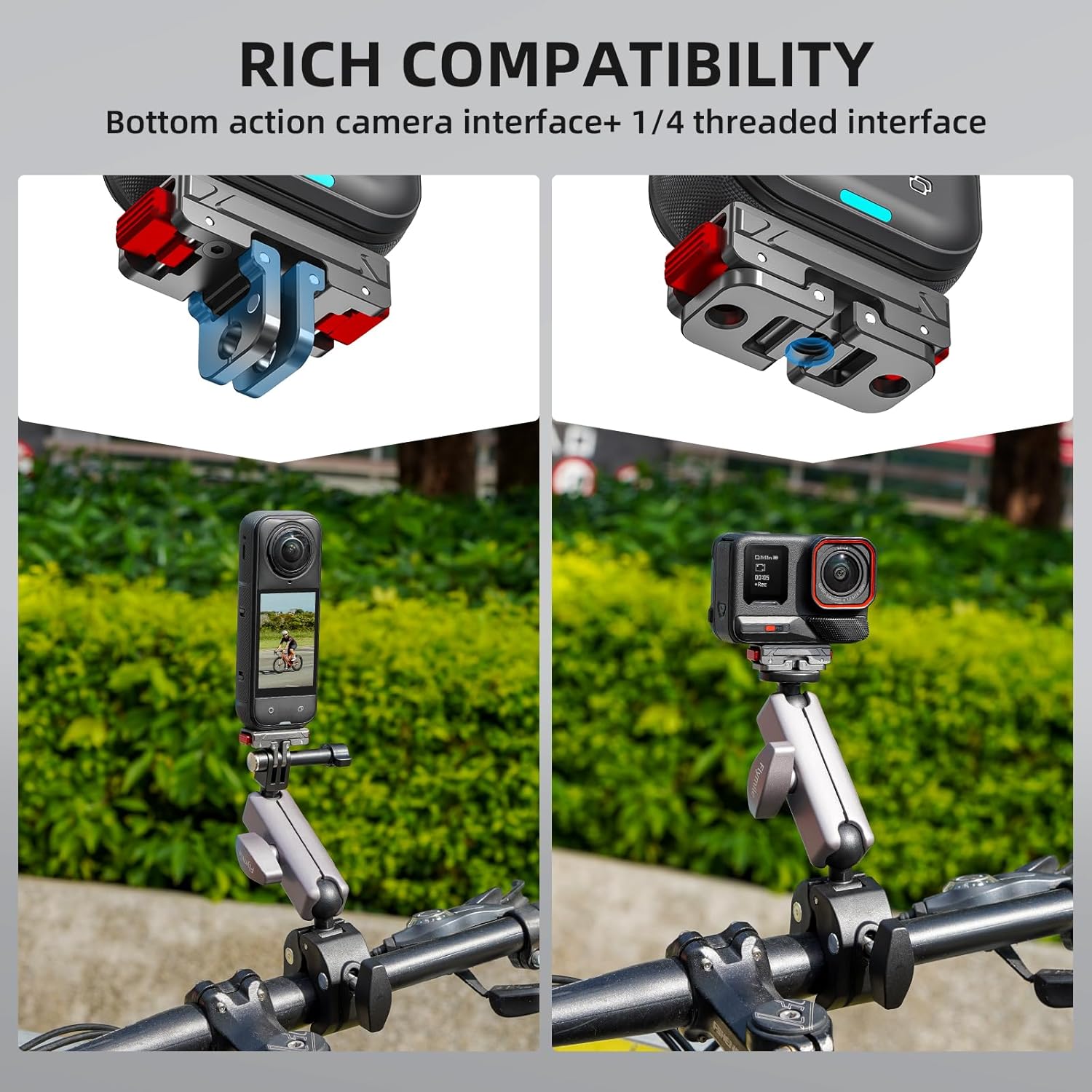 • 6. 1-SECOND QUICK RELEASE FOR FLEXIBLE SHOOTING: Designed with convenience in mind, this X5 motorcycle mount supports tool-free, fast installation and removal of your camera—saving you time when setting up or storing your device. Its 180° rotation function allows flexible angle adjustment, letting you effortlessly capture every desired POV (point of view) shot during your rides.